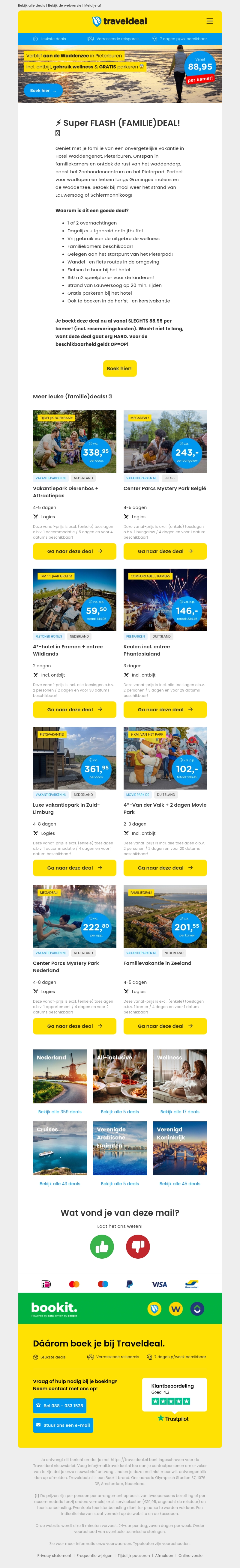 Ontsnap met het hele gezin naar de prachtige Waddenzee met deze geweldige flashdeal. Geniet van een comfortabel verblijf inclusief ontbijt en uitgebreide wellnessfaciliteiten. Profiteer van gratis parkeren bij het hotel. Boek je kamer vanaf slechts β¬89,95 en beleef een onvergetelijke vakantie. Mis deze kans niet voor een unieke ervaring aan de Nederlandse kust!