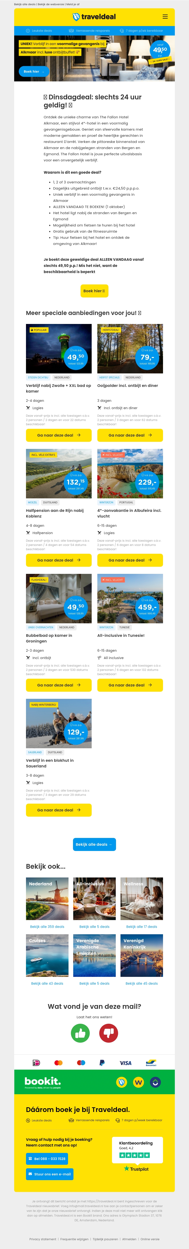 Ontdek een unieke ervaring in het 4-sterren The Fallon Hotel Alkmaar. Vroeger een gevangenis, nu een stijlvol hotel met moderne gemakken. Geniet van een overnachting inclusief ontbijt vanaf slechts €49,50 per persoon. Deze exclusieve aanbieding is slechts 24 uur geldig, mis het niet!