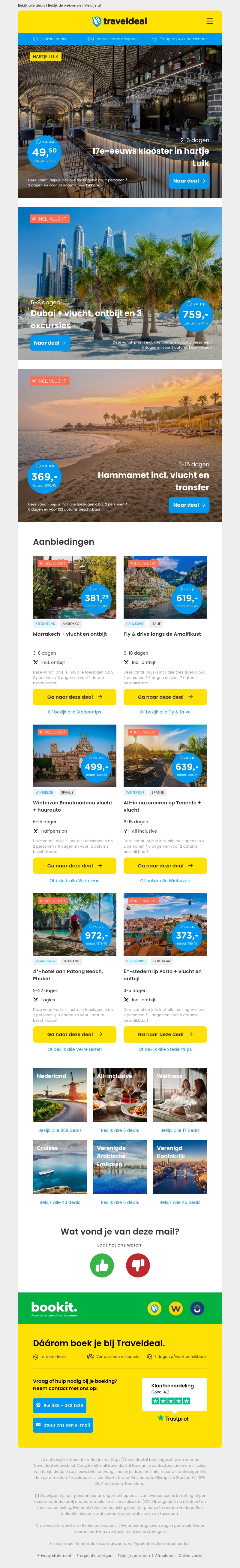 Beleef de charme van een 17e-eeuws klooster in het hart van Luik vanaf slechts €49,50 per persoon. Verken Dubai met vlucht, ontbijt, en drie excursies vanaf €759 per persoon. Reis met ons naar idyllische bestemmingen zoals Marrakech en Hammamet met onvergetelijke aanbiedingen. Ontsnap aan de dagelijkse sleur met deze unieke reiservaringen.