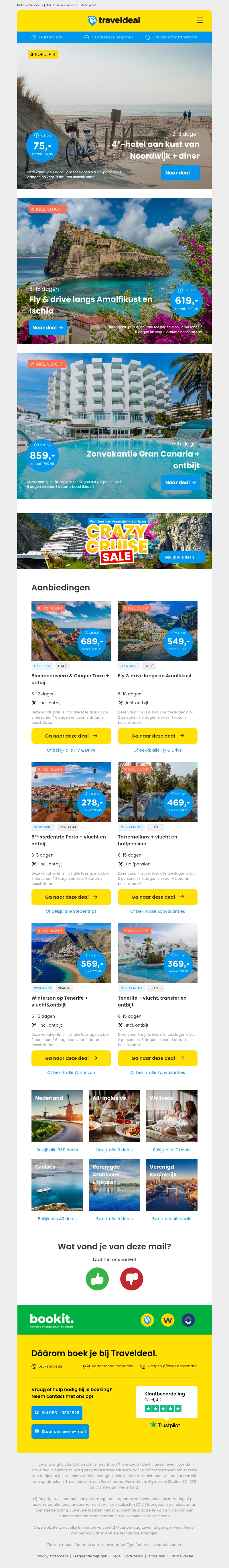 Beleef een onvergetelijke ervaring in een 4*-hotel aan de kust van Noordwijk inclusief diner. Begin je avontuur vanaf €75 per persoon. Of maak een fly & drive langs de prachtige Amalfikust en Ischia vanaf €619 per persoon. Boek snel en ontdek meer aanbiedingen!