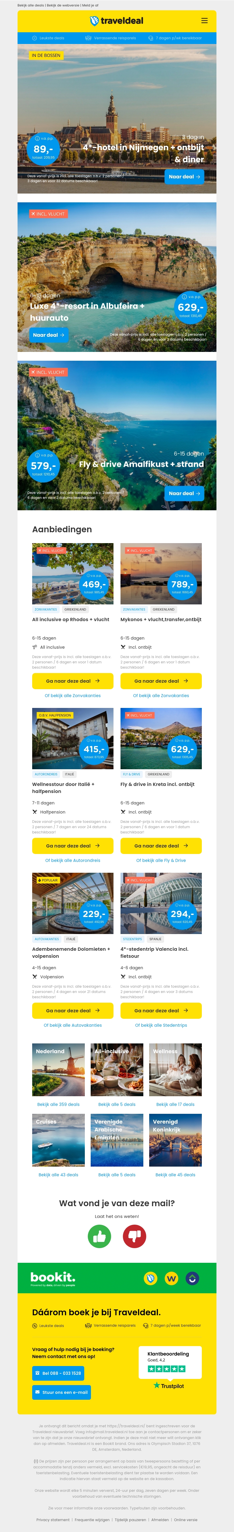 Ontsnap naar een luxe €4*-hotel in Nijmegen inclusief ontbijt en diner vanaf slechts €89 per persoon. Geniet van prachtige aanbiedingen voor reizen naar Albufeira, de Amalfikust, en meer. Lees verder voor meer informatie over deze en andere geweldige reisdeals.