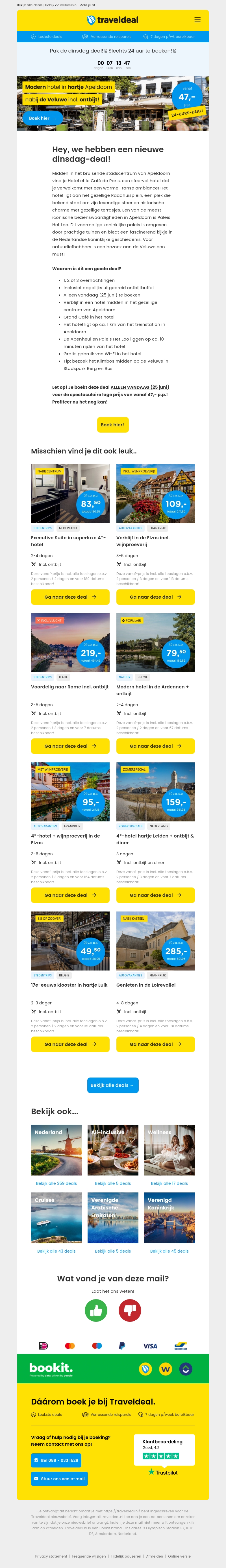 ALLEEN VANDAAG! 💥 2 dgn in hartje Apeldoorn bij de Veluwe + ontbijt v.a. €47,50 p.p.! 😱