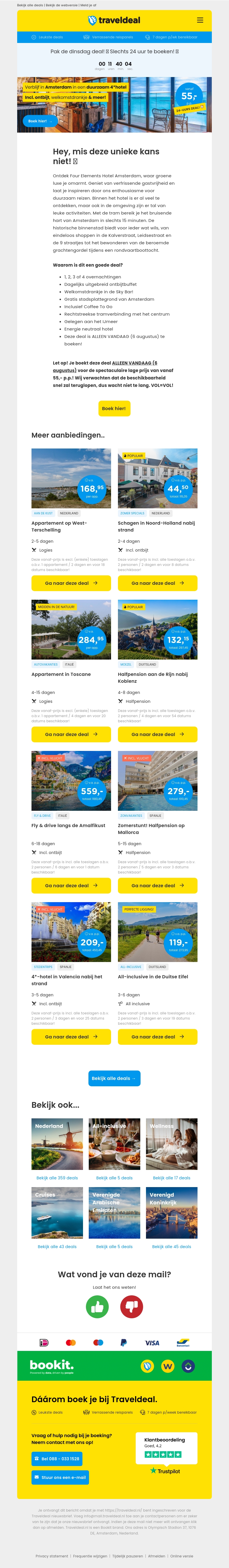 Mis deze unieke kans niet! Verblijf in een luxe 4*-hotel in Amsterdam inclusief ontbijt en een welkomstdrankje vanaf slechts €55 p.p. Geniet van het adembenemende uitzicht vanuit de skybar en ontdek de vele historische bezienswaardigheden van de stad. Boek nu, want deze aanbieding is alleen vandaag geldig!