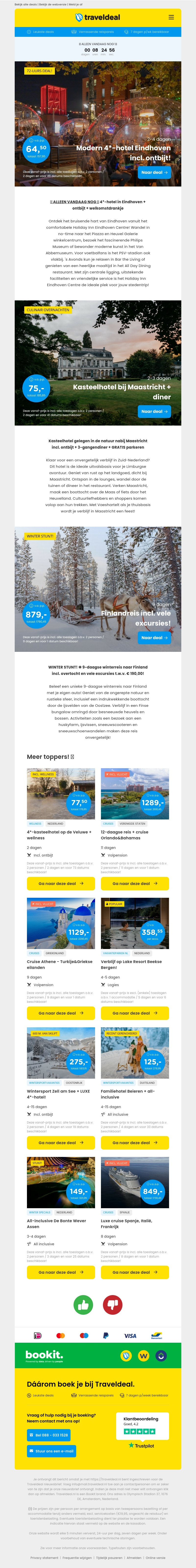 Verwen jezelf met spectaculaire deals op 4*-hotels in Eindhoven en Maastricht. Geniet van een heerlijk ontbijt en een luxe diner. Ontdek Finland met spannende excursies. Bezoek onze website voor meer exclusieve aanbiedingen en maak uw vakantie onvergetelijk.