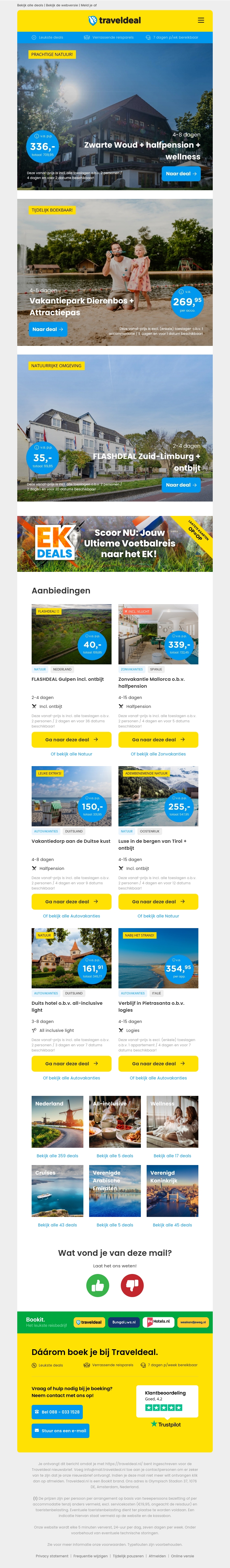 Bekijk de nieuwste deals voor autovakanties vanaf slechts €336 per persoon en vakantieparken vanaf €269,95 per accommodatie. Bezoek prachtige natuurgebieden, geniet van wellness en halfpension in het Zwarte Woud, of beleef avontuur in Vakantiepark Dierenbos. Maak nu je keuze en profiteer van deze aanbiedingen!