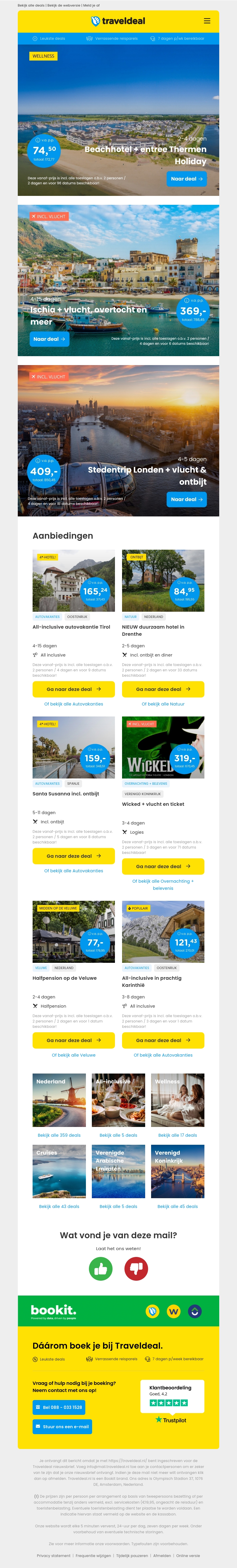 Geniet van een ontspannend verblijf in het Beachhotel inclusief entree tot Thermen Holiday vanaf €74,50 per persoon. Ontdek de prachtige omgeving van Ischia inclusief vlucht en overtocht vanaf €369 per persoon. Vergeet niet de vele andere aanbiedingen zoals stedentrips en all-inclusive vakanties.