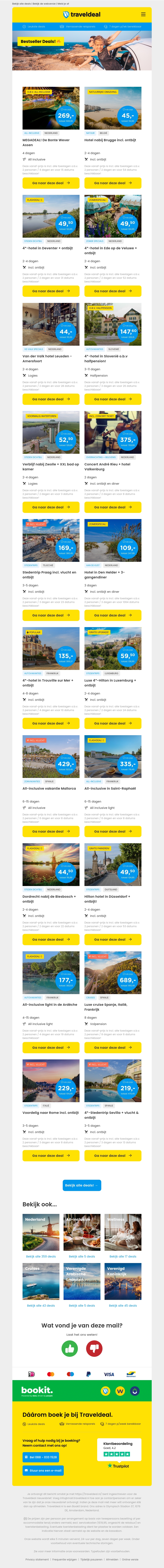 Profiteer nu van onze bestseller deals! Boek 4 dagen all-inclusive in Bonte Wever Assen voor slechts €289. Of kies voor een 2-daags verblijf bij Brugge inclusief ontbijt voor slechts €45. Daarnaast hebben we verschillende deals voor 4-sterren hotels met ontbijt voor geweldige prijzen en nog veel meer!