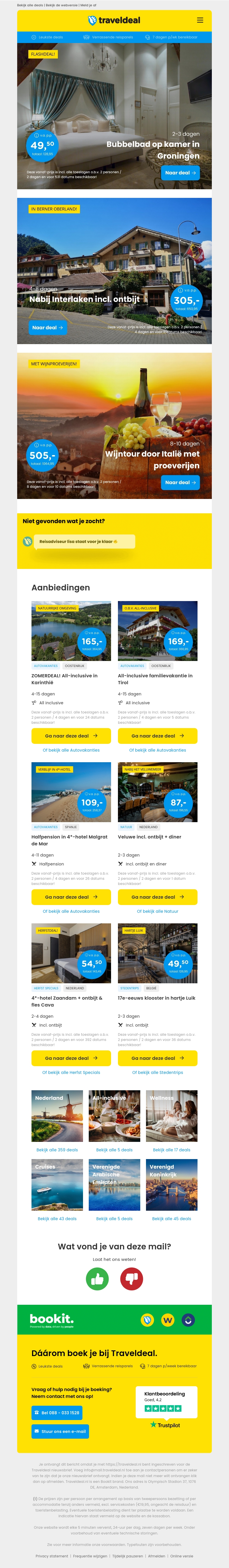 Ervaar luxe in Groningen met een bubbelbad op je kamer vanaf slechts €49,50 per persoon. Ontdek ook andere fantastische deals zoals een ontbijt in het sprookjesachtige Interlaken en een wijntour door Italië. Mis deze kans niet om betaalbaar te genieten van geweldige vakanties.