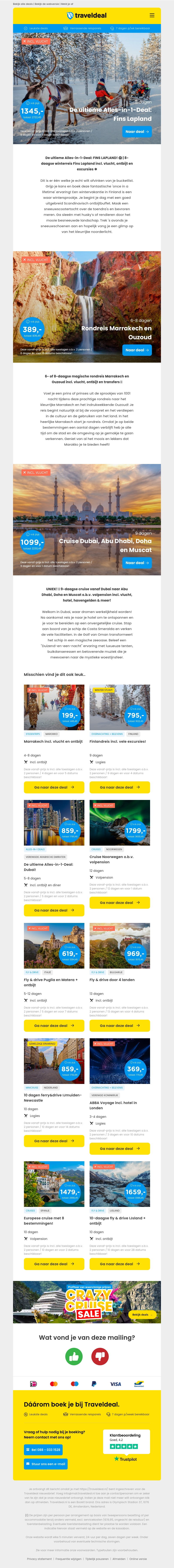 Ben jij op zoek naar je volgende droomvakantie? Of je nu wilt genieten van de sneeuw in Fins Lapland, een rondreis door het betoverende Marrakech of een cruise door Dubai, wij hebben de perfecte aanbiedingen voor jou. Bekijk alle deals en mis het niet!