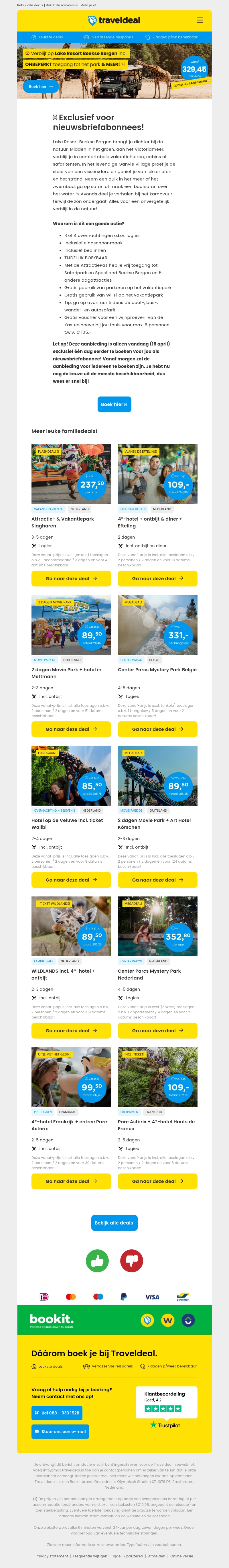 🎉 FAMILIE DEALS! ⏰ Laatste kans Lake Resort Beekse bergen v.a. 274,95 | 🎬 Movie Park Germany v.a. 89,- p.p. | ⛺ Kamperen in de Ardennen v.a. 131,70!