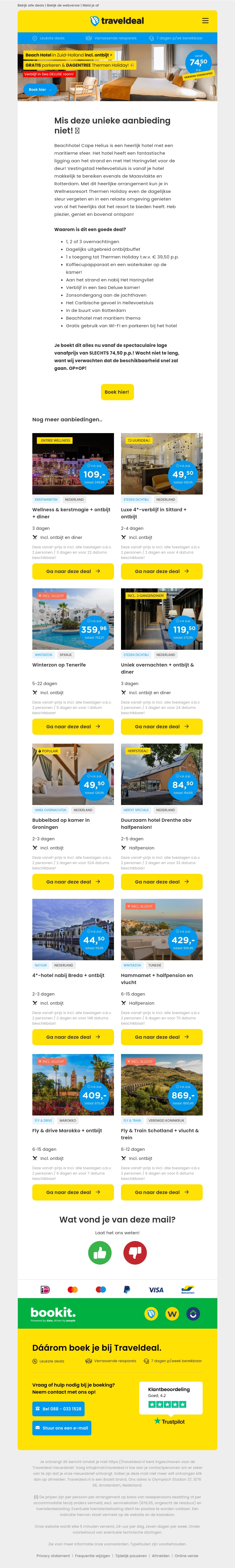 Profiteer van een geweldige deal bij het Beach Hotel in Zuid-Holland. Voor slechts €74,50 per persoon geniet je van ontbijt, gratis parkeren en toegang tot Thermen Holiday. Mis deze kans niet voor een ontspannen vakantie aan de kust.