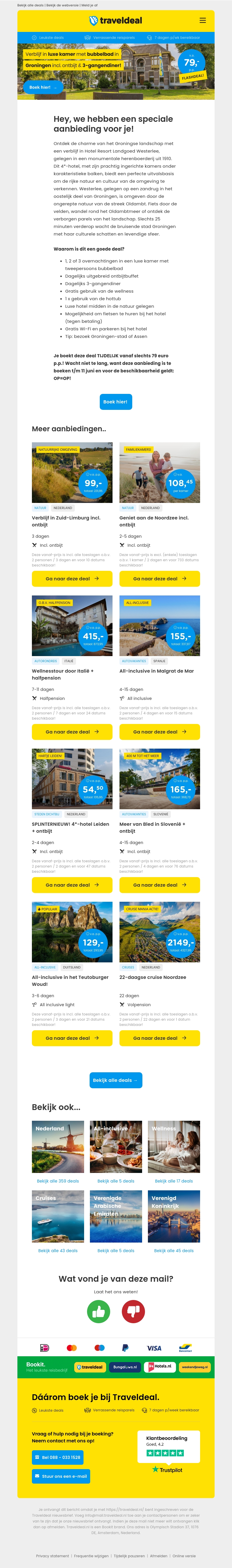 Ontsnap naar het prachtige Groningen en geniet van een verblijf in een luxe landgoedhotel. Voor slechts 79,- per persoon krijg je een kamer met bubbelbad, inclusief ontbijt en een heerlijk diner. Ontdek de natuur, het historische karakter van de stad en geniet van topfaciliteiten.