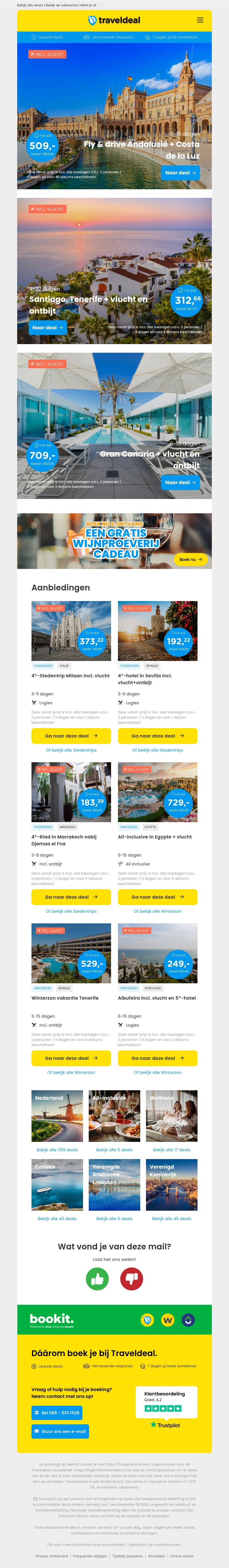 Ontsnap naar de zon met TravelDeal's nieuwste deals, waaronder Fly & Drive avonturen in Andalusië en zonvakanties op Tenerife. Ontdek all-inclusive vakanties in exotische bestemmingen zoals Marrakesh en Egypte. Boek nu je volgende avontuur en geniet van geweldige kortingen!