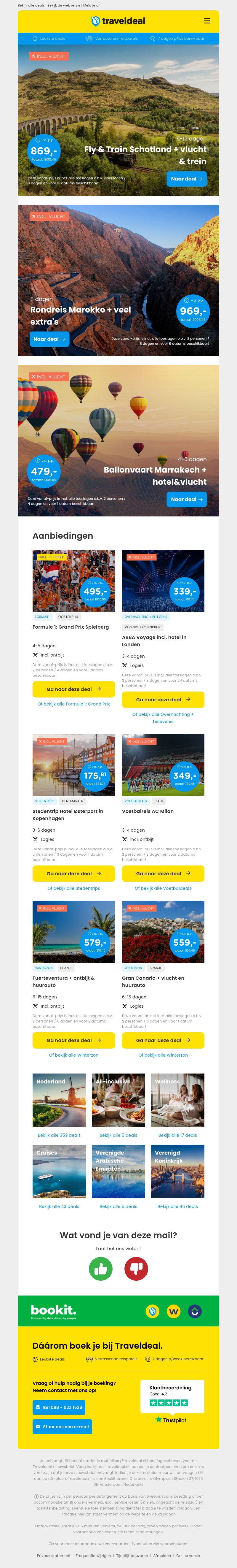 Beleef een unieke reiservaring door Schotland met onze Fly & Train deal inclusief vlucht en trein. Geniet van adembenemende landschappen en culturele bezienswaardigheden. Verder bieden we avonturen in Marokko en ballonvaarten in Marrakech. Ontdek fantastische aanbiedingen zoals de Formule 1 Grand Prix in Spielberg en uitgebreide vakanties op de Canarische Eilanden. Mis deze kansen niet en boek nu!