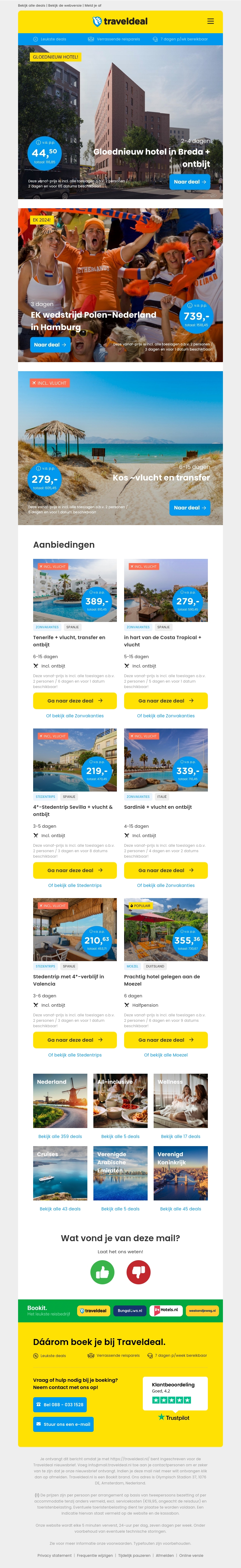 Bezoek het gloednieuwe hotel in Breda en geniet van een heerlijk ontbijt vanaf slechts €44,50 per persoon. Mis ook de spannende EK wedstrijd Polen-Nederland in Hamburg niet, met pakketten vanaf €739 per persoon. Ontdek daarnaast geweldige deals voor vakanties naar Kos, Tenerife, en meer.