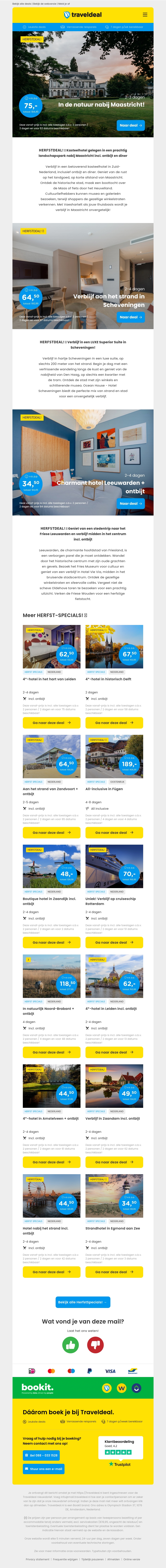 Herfst-KNALLERS! 🍂 Kasteelhotel bij Maastricht + diner €75 | LUXE suite Scheveningen €64,50 | SPOTGOEDKOPE Citytrip Leeuwarden €34,50! 😱