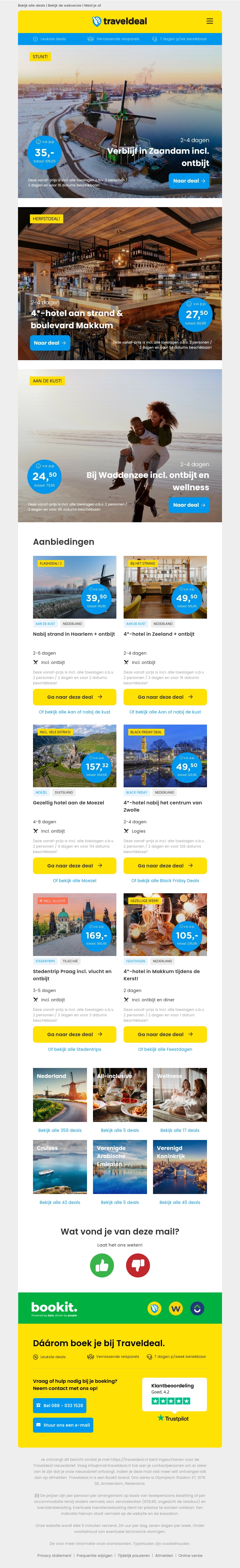 Geniet van de herfst met speciale deals bij Traveldeal. Ontdek verblijven in Zaandam inclusief ontbijt vanaf €35.00, en ervaar de rust bij de Waddenzee met wellness opties. Boek een verblijf in een 4-sterren hotel aan het strand van Makkum voor slechts €27.50 p.p. Mis deze geweldige herfstaanbiedingen niet en plan jouw perfecte uitje!