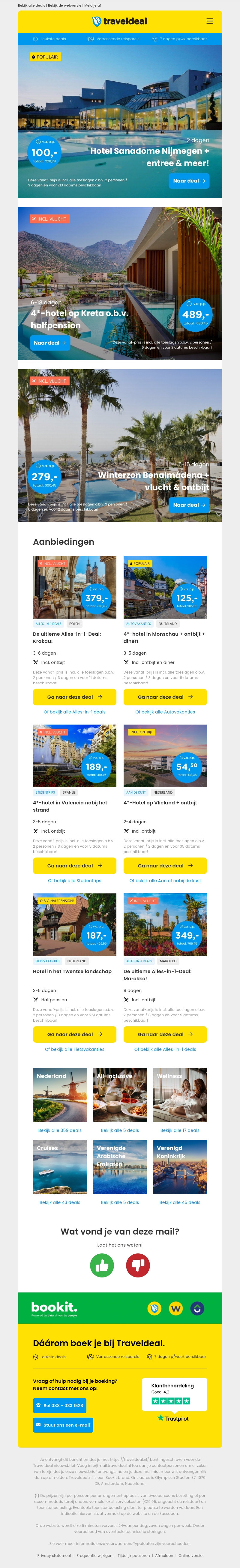 Hotel Sanadome Nijmegen + entree & meer! v.a. €100 per persoon | 4*-hotel op Kreta o.b.v. halfpension v.a. €489 per persoon & nog veel meer 💥