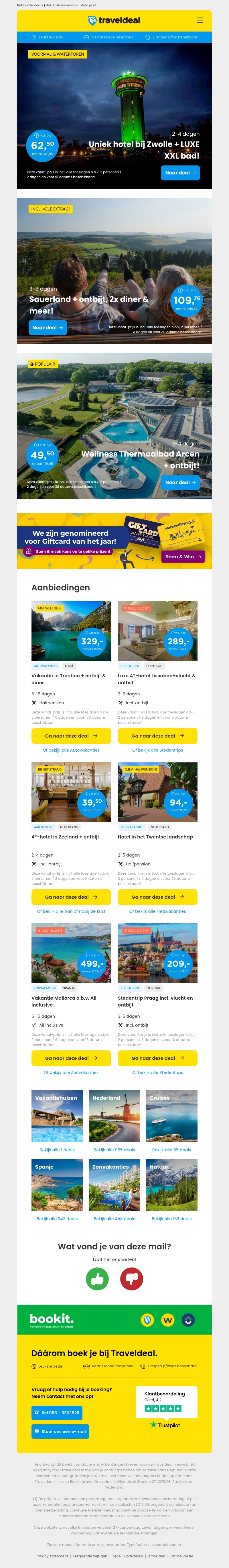 Ontdek unieke hoteldeals bij Traveldeal! Geniet van een luxe XXL bad in Zwolle of verken het Sauerland met ontbijt en diners inbegrepen. Profiteer van aantrekkelijke aanbiedingen zoals een wellness retreat in Arcen. Boek nu jouw ultieme ontspannen reiservaring!
