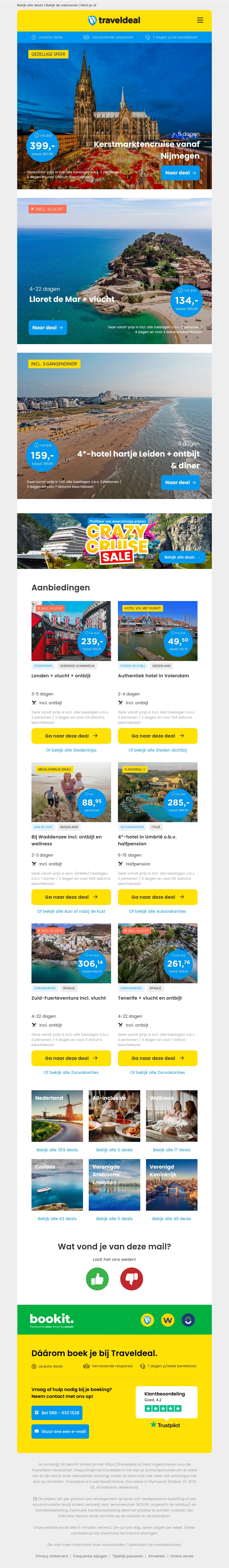 Ontdek de magie van kerstcruises vanaf slechts €399 per persoon en zonvakanties vanaf €134 per persoon. Geniet van prachtige bestemmingen zoals Nijmegen, Lloret de Mar, en nog veel meer. Bekijk onze aantrekkelijke aanbiedingen voor onvergetelijke reizen.
