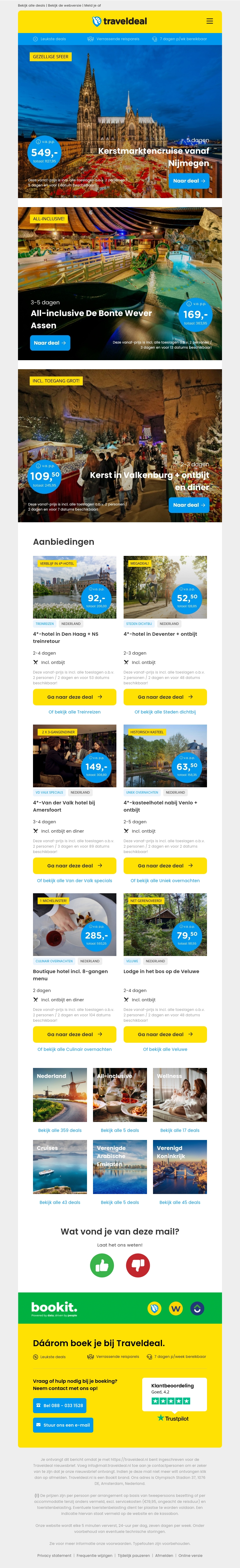 Ervaar de feestelijk sfeer op een kerstmarktencruise vanaf Nijmegen, al vanaf €549 per persoon. Ontdek betoverende bestemmingen en geniet van stijlvolle arrangementen zoals 'All-Inclusive De Bonte Wever'. Mis deze kans niet om de mooiste tijd van het jaar op een spectaculaire manier te beleven.