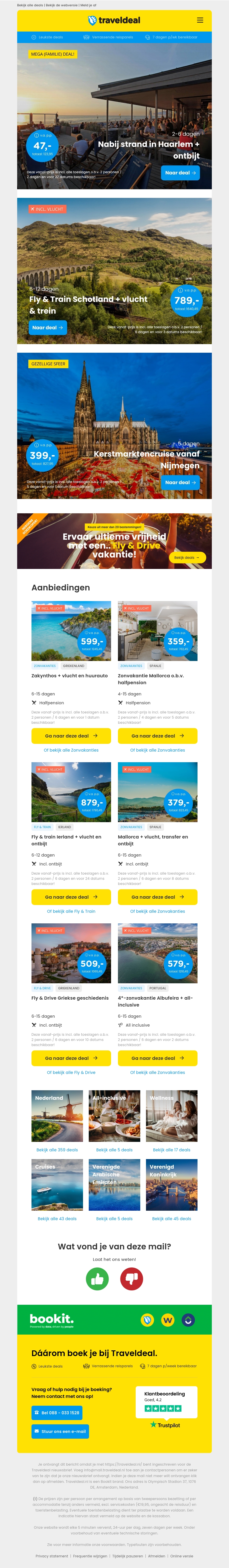 Beleef een onvergetelijk verblijf nabij het strand van Haarlem inclusief ontbijt vanaf slechts €47 per persoon. Verken Schotland met onze Fly & Train deal vanaf €789 per persoon. Ontdek meer fantastische aanbiedingen, inclusief kerstmarktencruises, Fly & Drive vakantiepakketten, en zonvakanties op schitterende bestemmingen zoals Zakynthos en Mallorca.