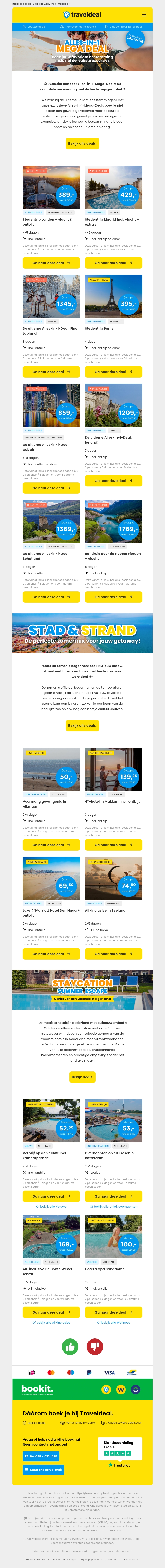 Maak kennis met de ultieme Alles-in-1-MEGADEALS van Traveldeal! Profiteer van voordelige prijzen en ontdek prachtige bestemmingen inclusief vluchten en overnachtingen. Boek nu en geniet van een zorgeloze vakantie!