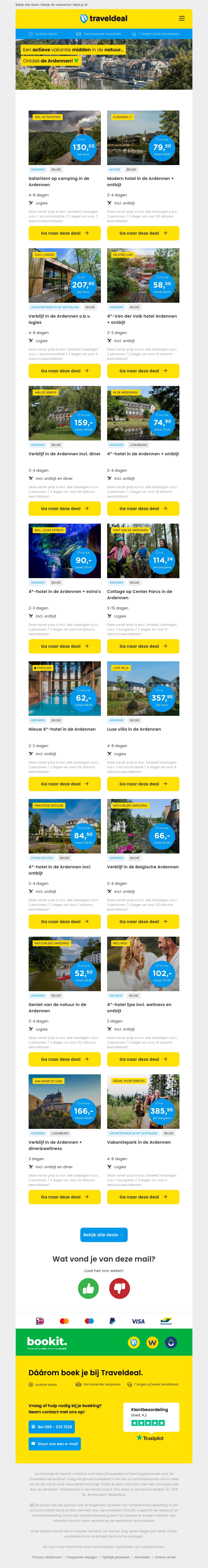 Ga mee op avontuur en ontdek de prachtige Ardennen met Traveldeal! Geniet van diverse verblijven, van luxe hotels tot knusse cottages. Ervaar de natuur, rust en volop activiteiten voor een onvergetelijke vakantie! Ontdek nu de beste aanbiedingen en beleef de magie van de Ardennen.