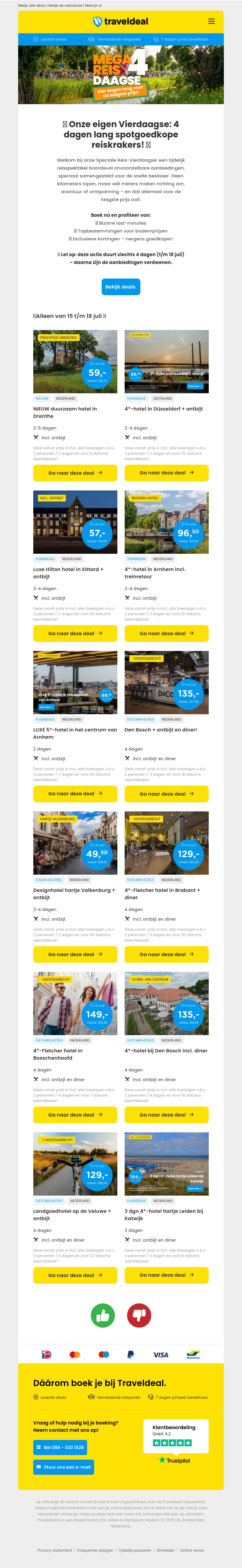 🎉 Onze eigen Vierdaagse: 4 dagen lang spotgoedkope reiskrakers! 🧳