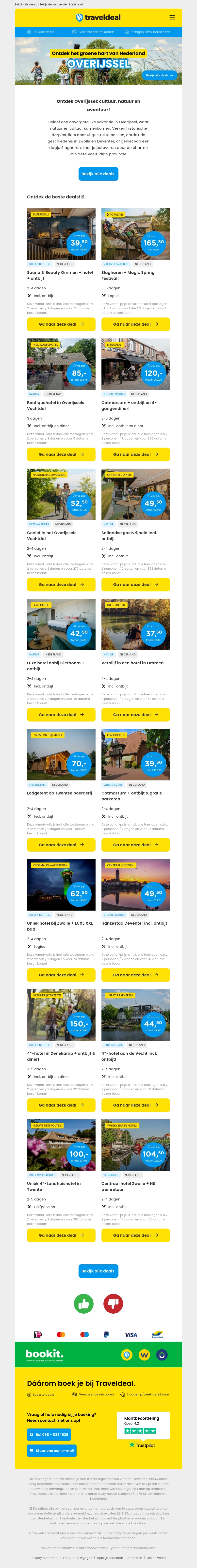 Verken het groene Overijssel met Traveldeal's exclusieve aanbiedingen. Geniet van luxe accommodaties en ontdek culturele parels. Maak van je reis een onvergetelijke ervaring met de beste deals. Laat je verrassen door de natuur en gastvrijheid. Boek nu en geniet van een groene vakantie in Nederland.