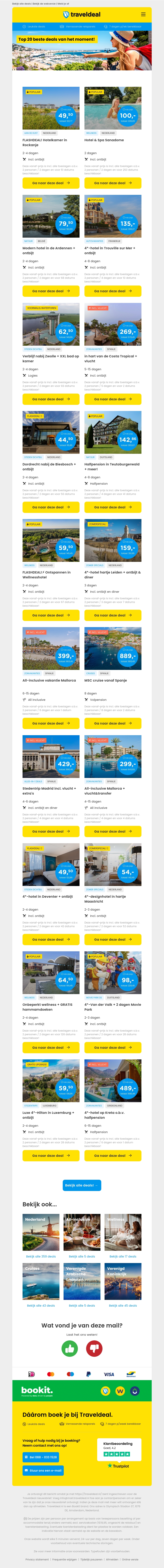 Deze week heeft Traveldeal de top 20 aanbiedingen voor jou op een rijtje gezet. Van luxueuze hotels tot spannende avonturen, er is voor ieder wat wils. Begrijp snel deze kans en begin met plannen. Boek vandaag nog je droomreis en profiteer van geweldige kortingen. Mis het niet!