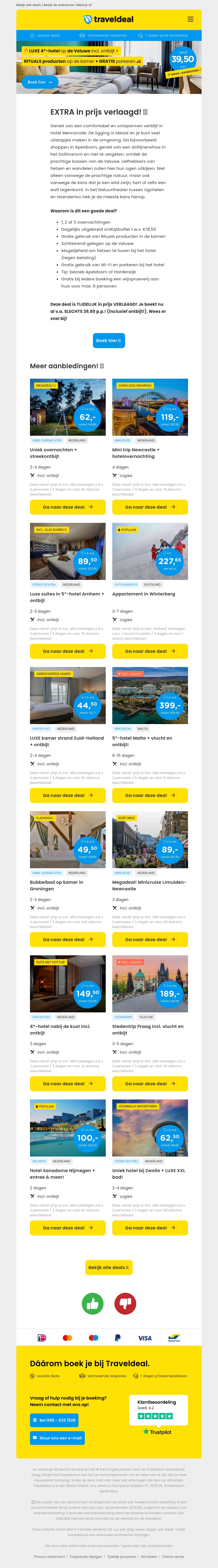 Beleef een luxe verblijf op de Veluwe met deze exclusieve 4-sterren deal. Geniet van een overnachting inclusief een uitgebreid ontbijt, Rituals producten, en gratis parkeren. Ideaal voor een ontspannen weekendje weg. Boek nu voor slechts €39,50 per persoon en profiteer van deze scherpe prijsverlaging. Wacht niet te lang, deze deal is tijdelijk beschikbaar.