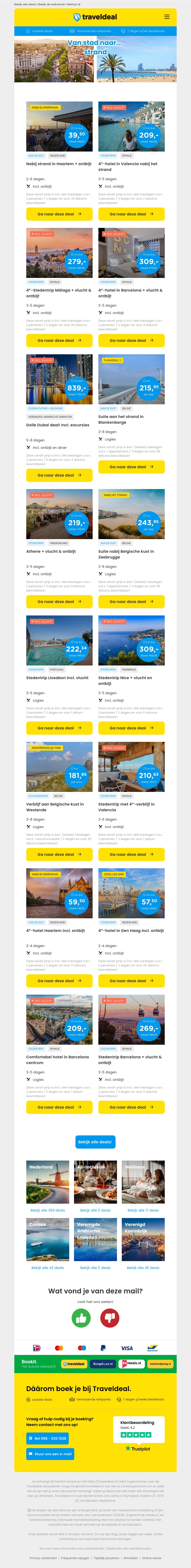 Mis deze kans niet om te genieten van het beste van beide werelden: stad en strand! Ontdek verblijven in Haarlem, Valencia, Málaga, Barcelona en meer. Allemaal inclusief geweldige voorzieningen en voordelige tarieven. Boek nu je ideale vakantie met onze fantastische deals!
