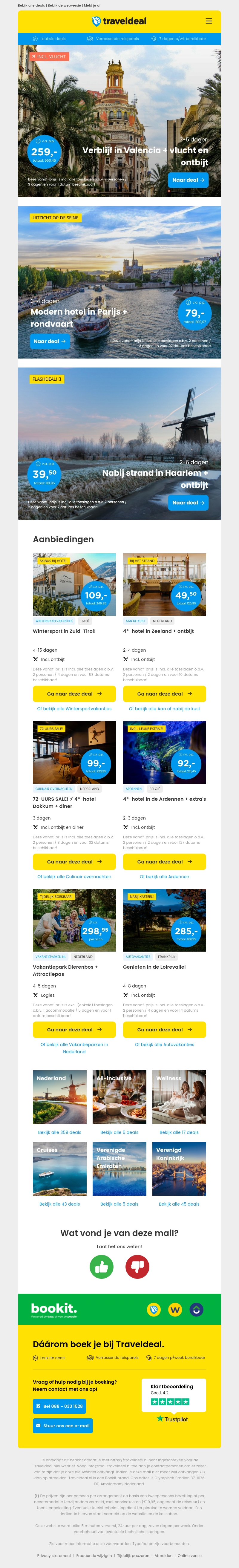 Ontdek geweldige stedenreizen vanaf slechts €79 per persoon. Verken Valencia, Parijs, en nog veel meer prachtige bestemmingen met onze exclusieve aanbiedingen. Boek nu jouw droomreis met voordelige prijzen en geniet van een onvergetelijke ervaring. Of je nu houdt van cultuur, natuur of avontuur, er is voor ieder wat wils. Mis ook onze speciale excursiedeals niet!