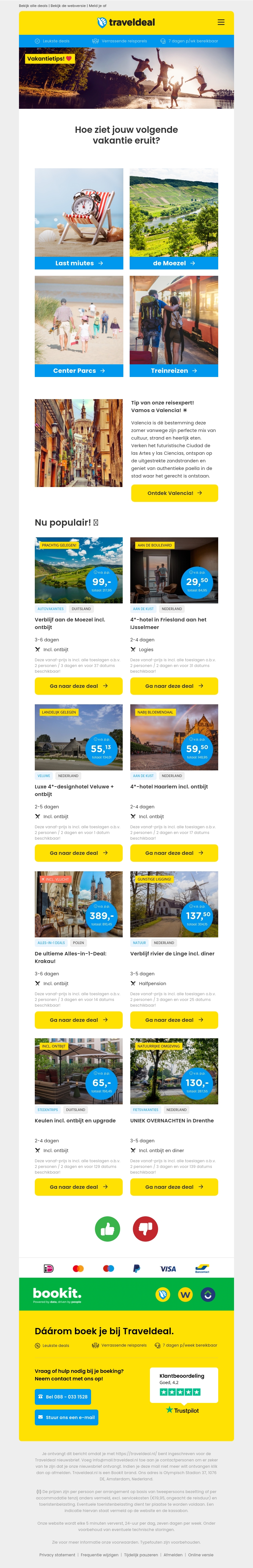 Ontdek nu de beste tips voor een zorgeloze zomervakantie met Traveldeal. Wij bieden je de beste last minute deals en populaire bestemmingen. Ontvang persoonlijke aanbevelingen van onze reisspecialisten en boek je volgende droomvakantie gemakkelijk en snel.