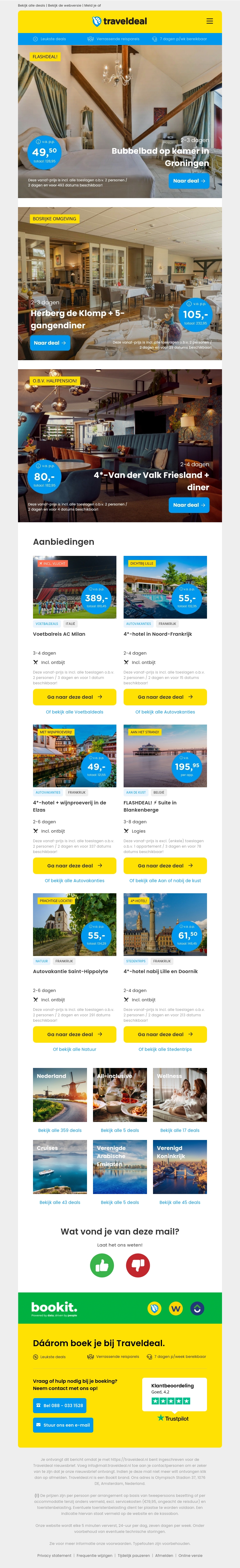 Beleef een unieke nacht in Groningen of geniet van een luxe diner bij Van der Valk Friesland. Ontdek diverse aanbiedingen zoals een verblijf in Noord-Frankrijk of een wijnproeverij in de Ardennen. Reis vanaf slechts €49,50 en geniet van speciale prijzen op verschillende bestemmingen.