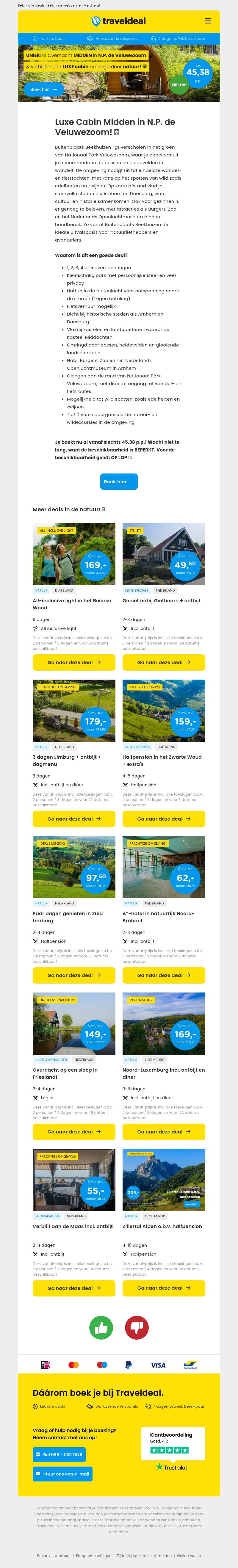 WAUW! 😍 Overnacht MIDDEN in N.P. de Veluwezoom in een LUXE cabine v.a. 45,38 p.p.! 😱