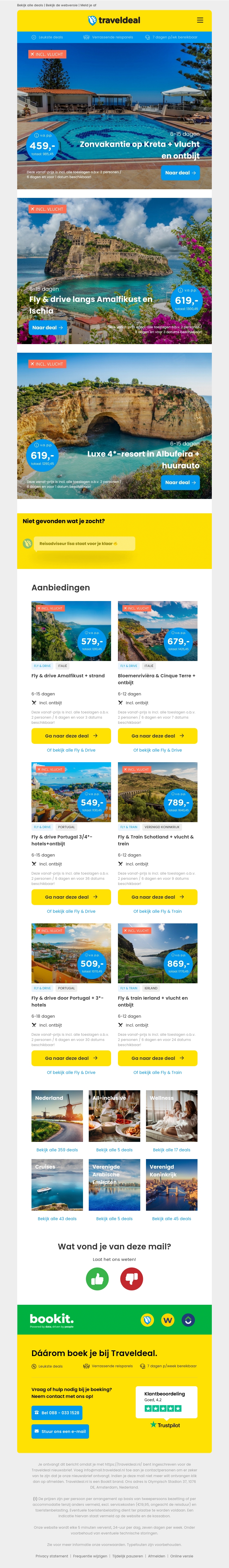 Bekijk onze fantastische zonvakanties met Fly & Drive deals en meer. Ontdek de mooiste bestemmingen zoals Kreta, de Amalfikust en Albufeira. Boek nu en geniet van voordelige prijzen inclusief vlucht en ontbijt.