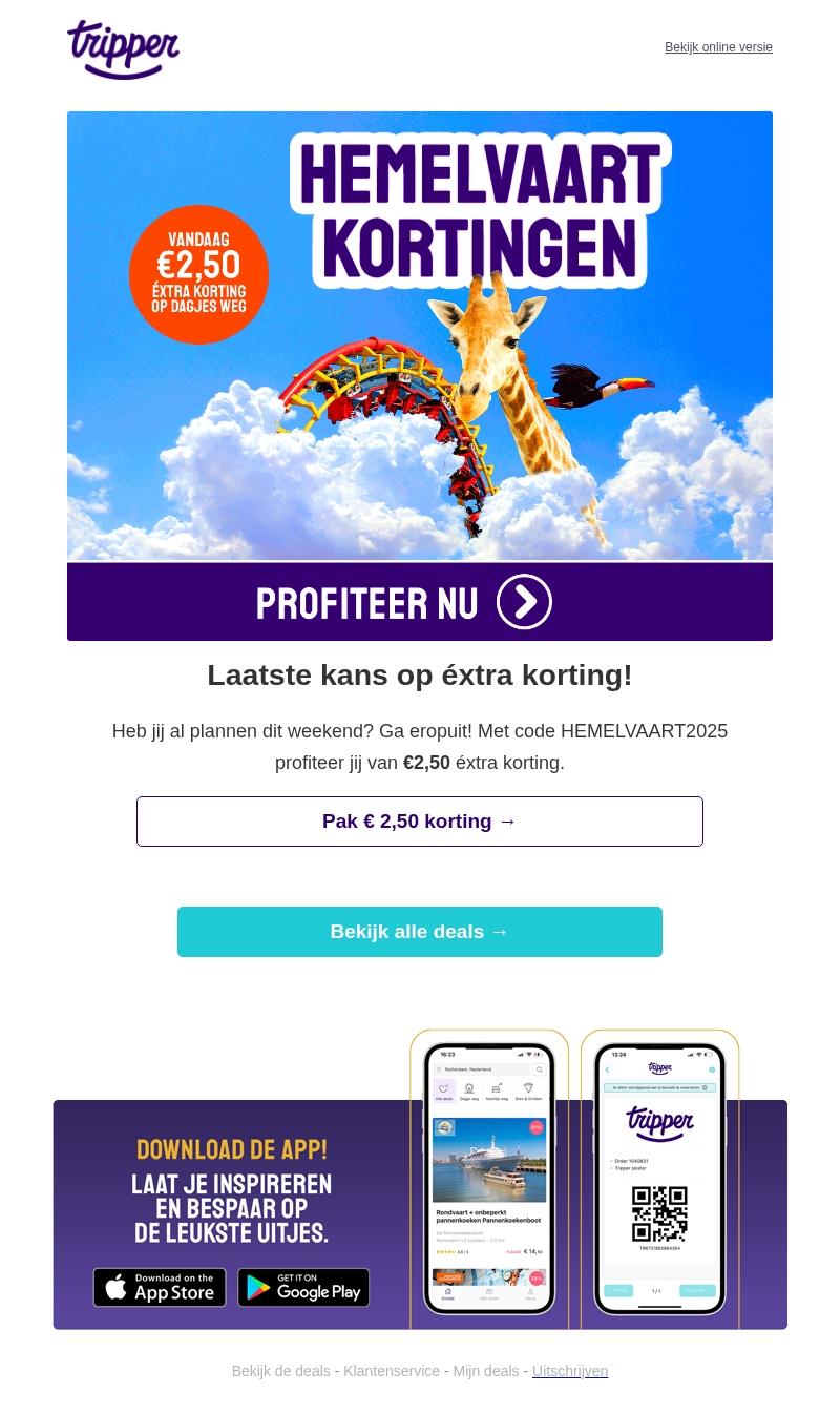 Laatste kans⏰ €2,50 éxtra korting op dagjes weg