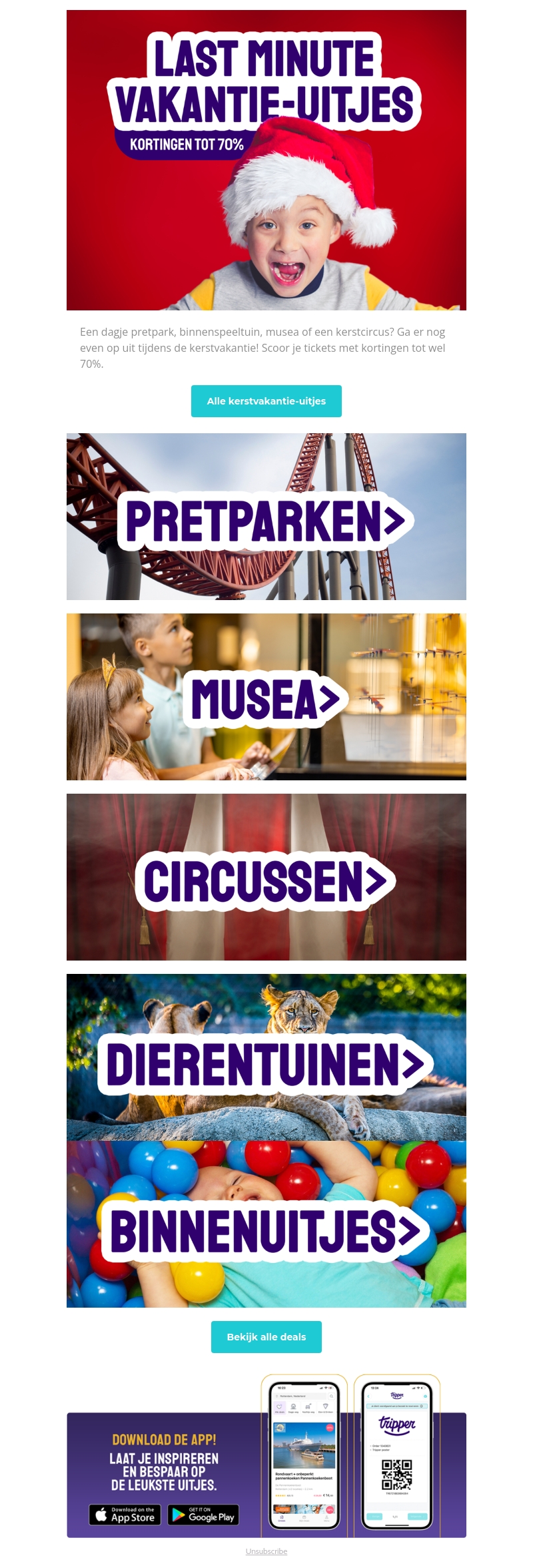 Beleef een betoverende kerstvakantie met geweldige kortingen! Geniet van pretparken, musea, circussen, dierentuinen en leuke binnenactiviteiten. Ontsnap aan de dagelijkse sleur en maak prachtige herinneringen met het hele gezin. Plan nu je uitje en profiteer van kortingen tot 70%! Mis deze unieke kans niet om de feestdagen extra speciaal te maken.