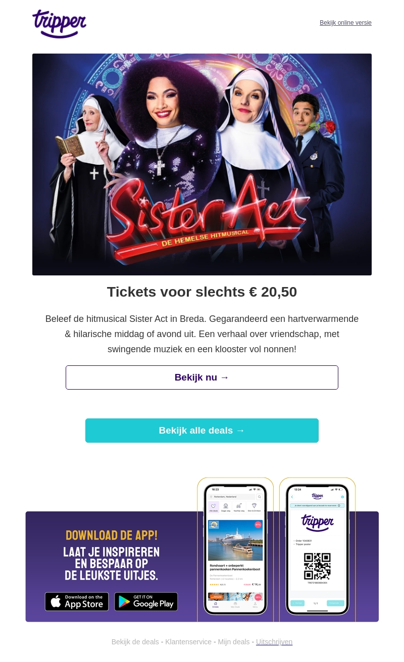 Beleef de hitmusical Sister Act in Breda voor slechts € 20,50. Garandeer jezelf van een hartverwarmende en hilarische avond uit. Geniet van een verhaal over vriendschap met swingende muziek. Deze aanbieding mag je niet missen. Klik nu om je tickets te bemachtigen.