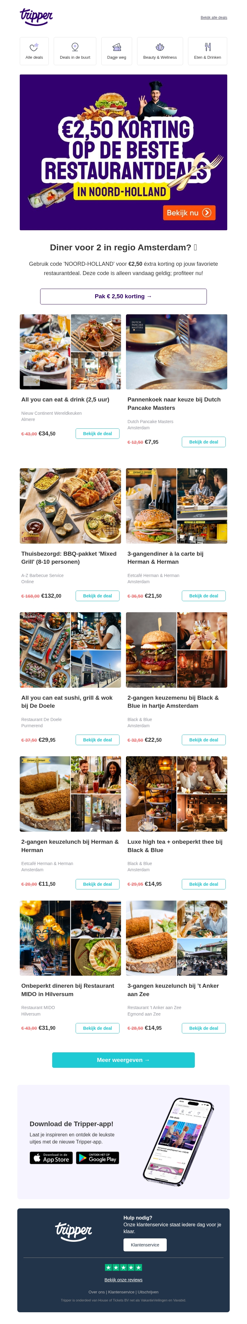 Vandaag €2,50 éxtra korting op alle restaurantdeals