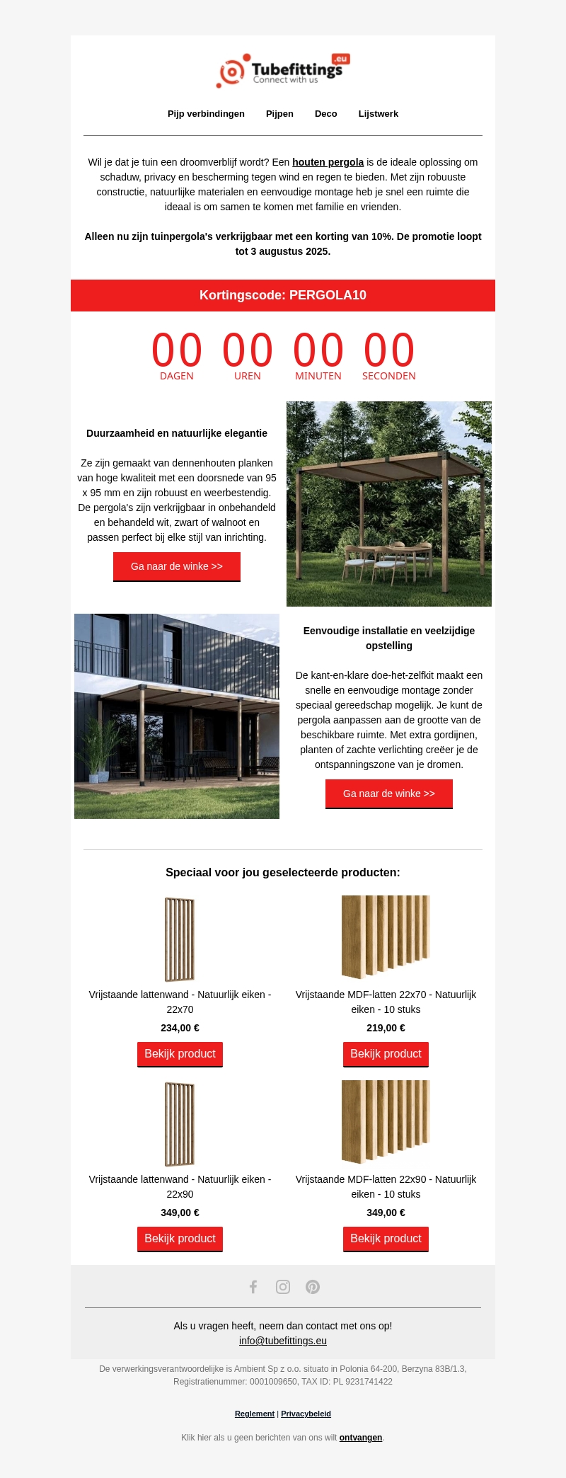 Pak deze kortingscode: PERGOLA10