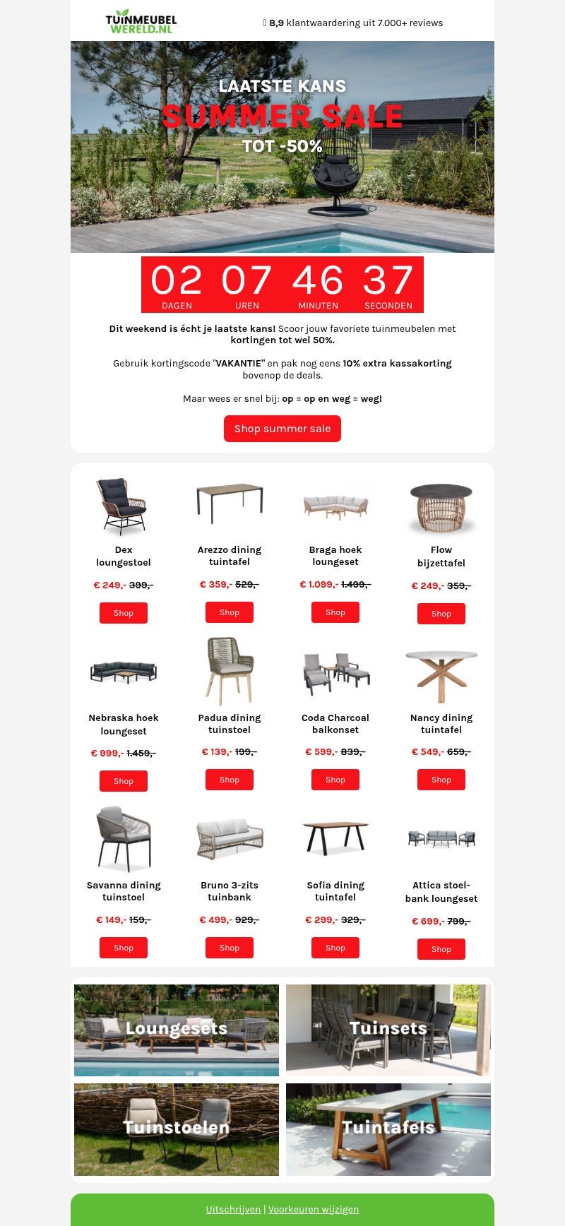 10% korting op alle tuinmeubelen