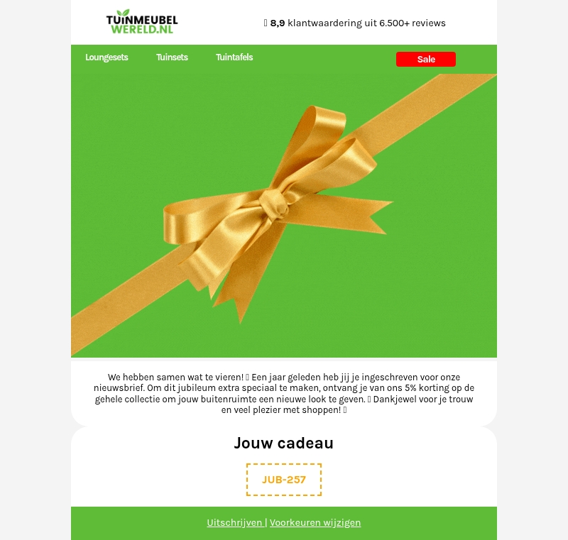 Gefeliciteerd met jouw Tuinmeubelwereld verjaardag! π₯³