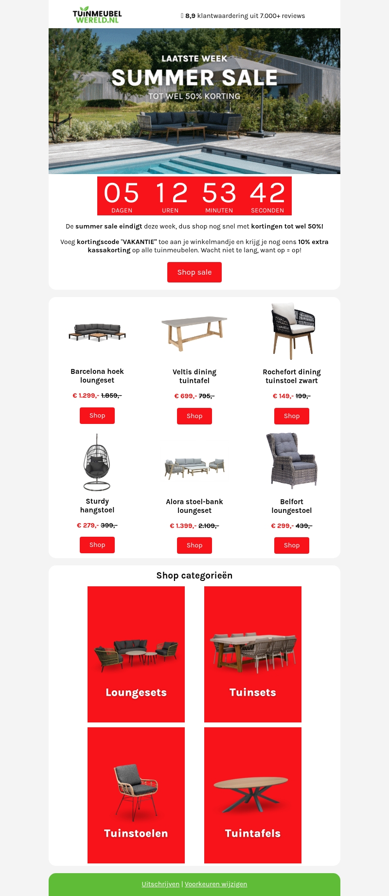 10% korting op alle tuinmeubelen