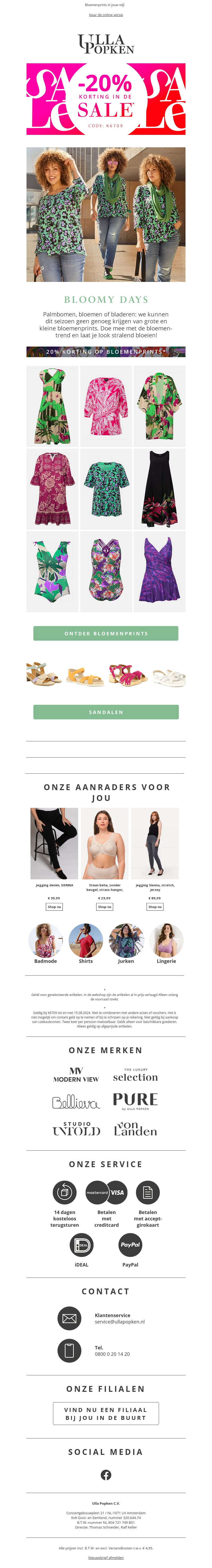 Geniet nu van een geweldige korting van 20% op diverse stijlvolle items in de sale. Ontdek de nieuwste trends met prachtige bloemenprints. Koop nu en vernieuw je garderobe voor een fractie van de prijs.