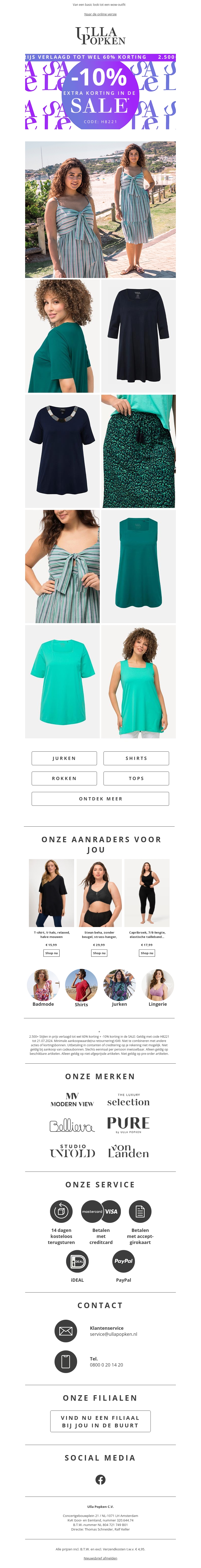 Duik snel in onze nieuwste collectie met meer dan 500 nieuwe artikelen! Profiteer van 10% extra korting op alle SALE items met de speciale code. Zorg dat je er snel bij bent voordat alles weg is. Bekijk onze selectie jurken, shirts, rokken en tops en sla je slag!