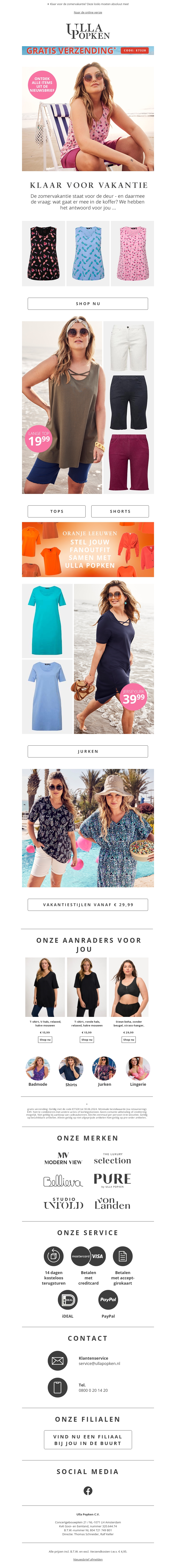 De zomer staat voor de deur en Ulla Popken heeft de perfecte outfits voor jouw vakantie. Ontdek lichte tops, comfortabele shorts en elegante jurken in de nieuwste collectie. Profiteer nu van gratis verzending en haal je favoriete items in huis.
