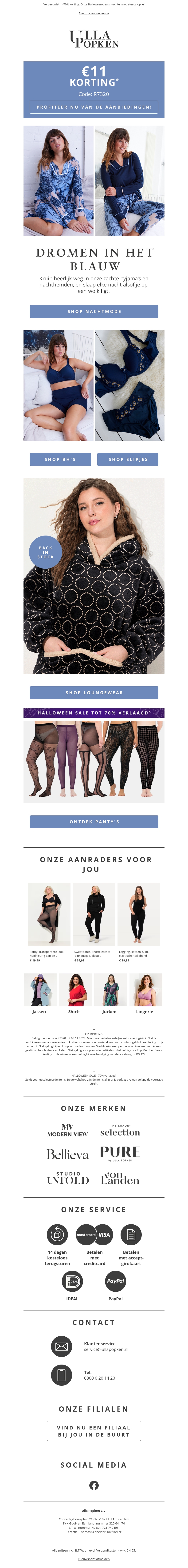 Verwen jezelf met onze nieuwste collectie blauwe nachtkleding en ontvang nu €11 korting. Of je nu houdt van comfortabele pyjama's of stijlvolle slipjes, er is voor ieder wat wils. Bezoek onze winkel, ontdek de nieuwste herfstmode en laat je inspireren door onze selectie. Mis deze kans niet en shop nu voordelig jouw favoriete items.